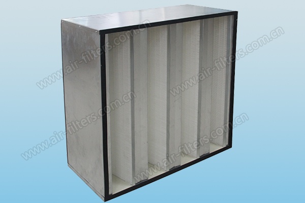 组合式高效过滤器是采用金属框架,以超细玻璃纤维滤纸作为滤料,热熔胶作分隔物。组合式高效过滤器的迎风面大,因此他的容尘量大、风速低。用于中央空调通风系统中级过滤、制药、医院、电子、食品、等工业净化中。